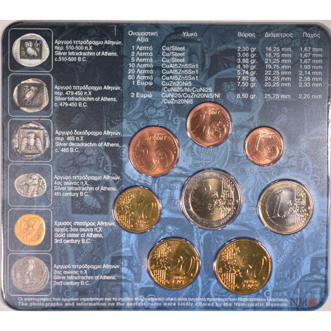 ΕΛΛΑΣ, 2005, blister, με τη σειρά των νομισμάτων ευρώ.