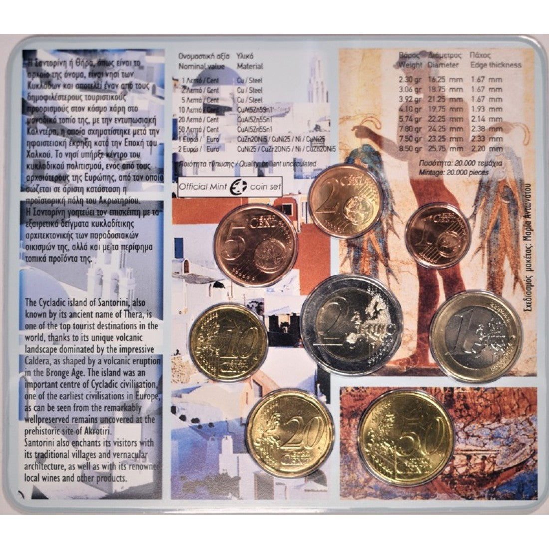 ΕΛΛΑΣ, 2012, blister, με τη σειρά των νομισμάτων ευρώ και εικόνες με θέμα την Σαντορίνη.