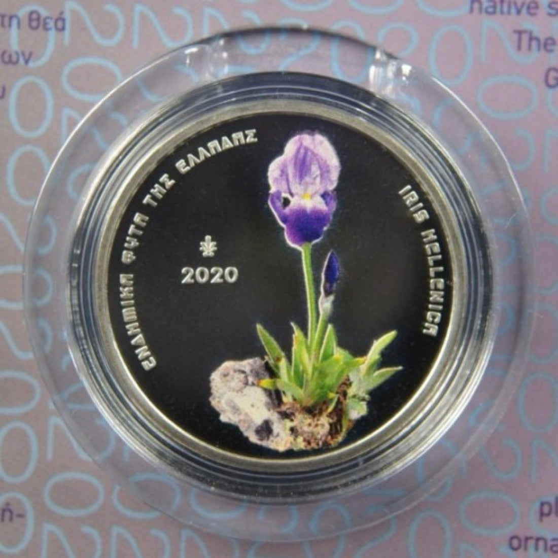 ΕΛΛΑΣ, 2020, blister, 5 ευρώ 2019. Αναμνηστικό έγχρωμο χαλκονικέλινο νόμισμα για τα Ενδημικά φυτά της Ελλάδος, Iris Hellenica.