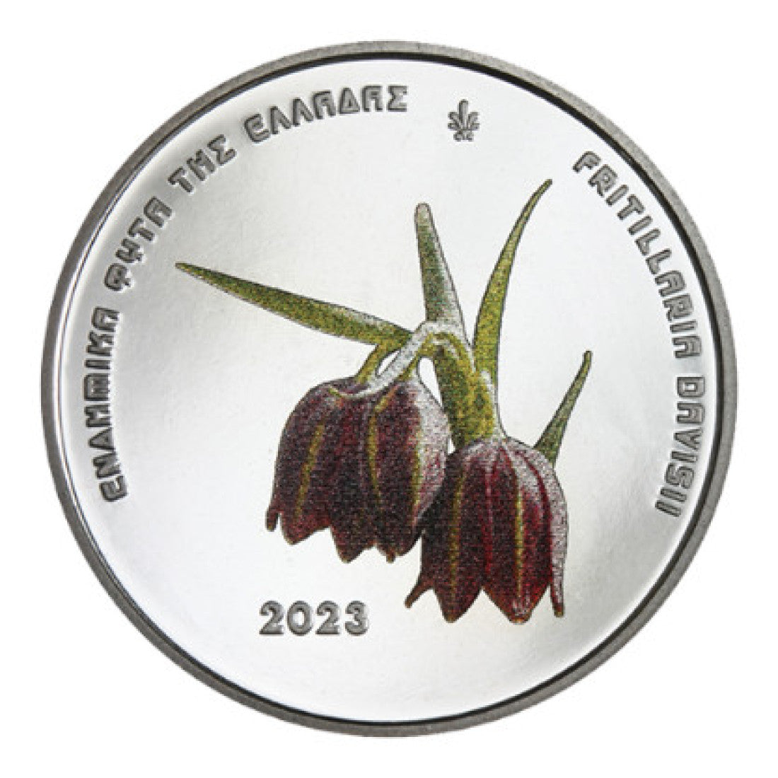 ΕΛΛΑΣ, 2023, blister, 5 ευρώ 2023. Αναμνηστικό έγχρωμο χαλκονικέλινο νόμισμα για τα Ενδημικά φυτά της Ελλάδος, Fritillaria Davisii.
